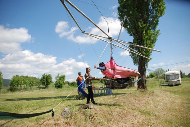 Nauczysz się poruszać z lotnią w terenie płaskim. Poznasz zasady pilotażu na specjalnym symulatorze lotu (trenażer) - lotnia podwieszona na wysięgniku.